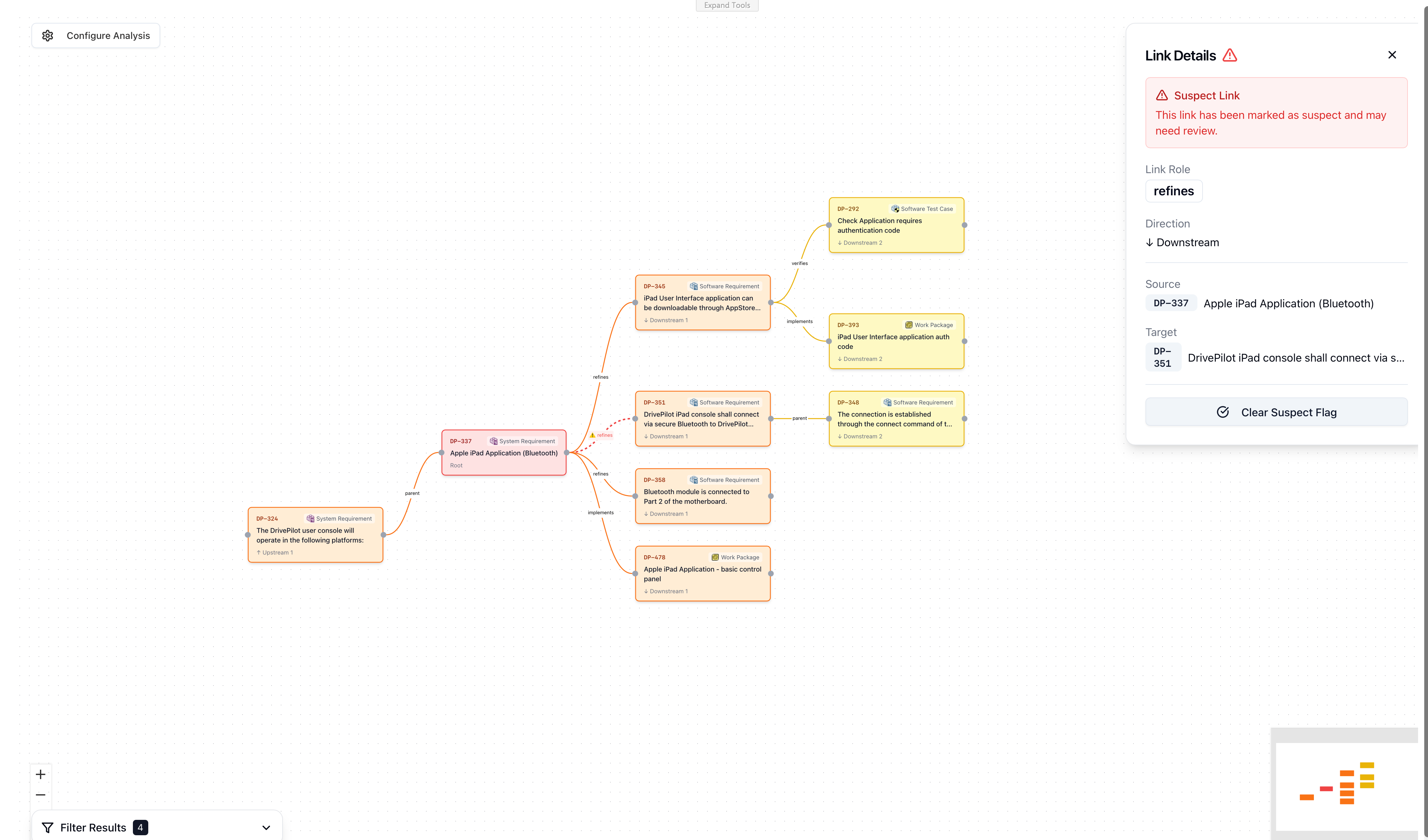 When requirements change, downstream items become suspect. Cascade highlights every affected link, lets your team review them in context, and clear the flags individually or in bulk once items are confirmed up to date.