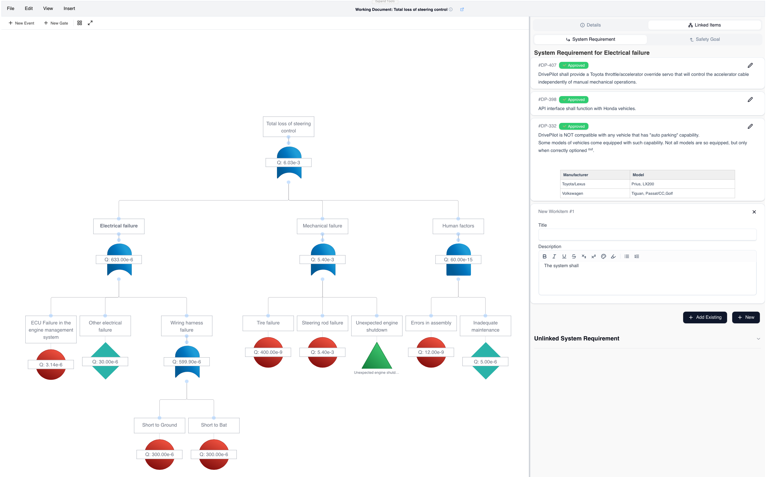 Every event in your fault tree links directly to Polarion work items. Trace from failure modes to system requirements and safety goals with a single click — no manual cross-referencing needed.