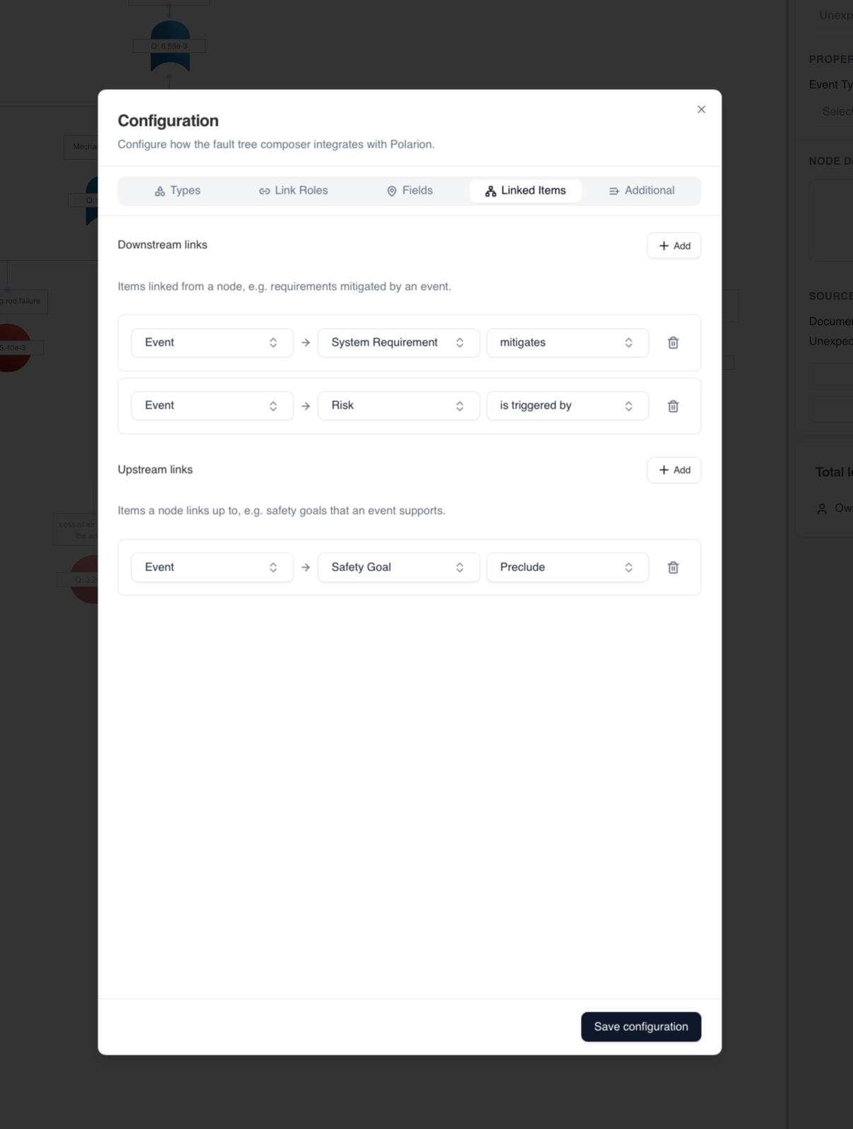 Every gate and event in your fault tree links back to Polarion work items. Trace from failure modes to requirements and back with one click.